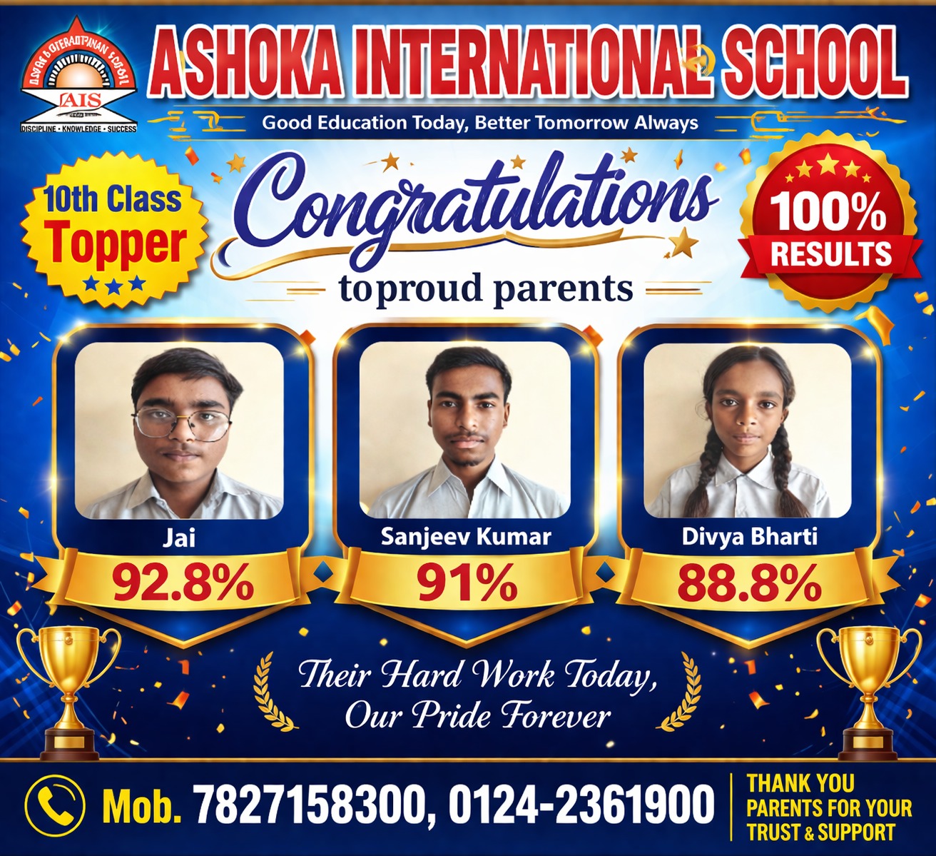 Class – 10th Topper 88%